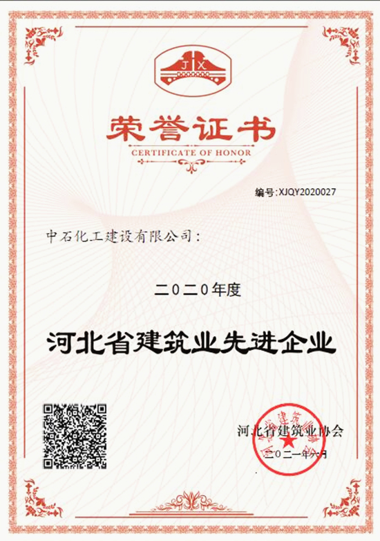 在河北省建筑業(yè)先進(jìn)企業(yè)認(rèn)定中,公司再獲2020年度河北省建筑業(yè)先進(jìn)企業(yè)。李京葆同志獲“河北省建筑業(yè)優(yōu)秀企業(yè)管理者”稱號,周勝平同志獲“河北省建筑業(yè)優(yōu)秀總工程師”稱號,謝本奇、郭建哲、張?zhí)鞁扇煌精@“河北省建筑業(yè)優(yōu)秀項(xiàng)目經(jīng)理”稱號。