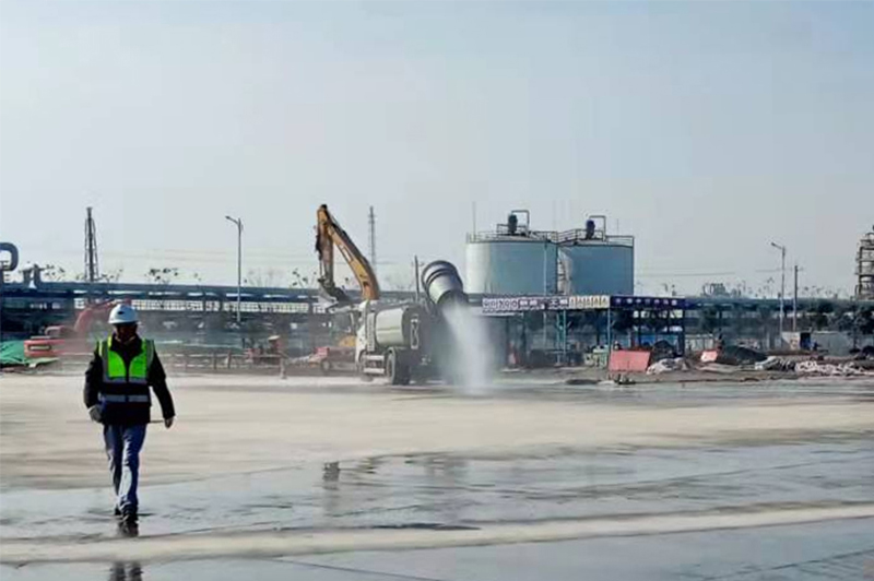 揚塵措施治理到位。項目出入口設(shè)置車輛自動沖洗設(shè)備及PM2.5揚塵監(jiān)測儀,主干道,循環(huán)路全部硬化,其余部位種植綠化填充,在作業(yè)過程中定時進行噴灑,現(xiàn)場設(shè)置霧炮機,力求無土化施工,為現(xiàn)場作業(yè)工人營造了舒心、清潔的工作環(huán)境。